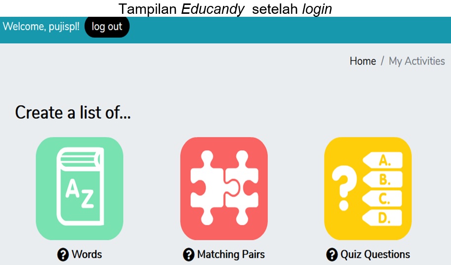 Educandy adalah aplikasi berbasis web yang memiliki slogan ‘making learning sweeter’ (membuat belajar lebih manis). Educandy dapat digunakan untuk membuat permainan daring yang menyenangkan. Permainan yang dibuat masih dalam konteks belajar tetapi tidak membosankan. Permainan ini dapat diberikan ketika pembelajaran tatap muka di kelas maupun saat PJJ daring atau luring. Permainan biasanya disukai dan sering dimainkan oleh peserta didik ketika merasa bosan, jenuh atau stres. Adanya permainan edukasi membuat pembelajaran menjadi lebih bervariasi dan mengasyikkan. Berikut ini adalah panduan membuat permainan di educandy.