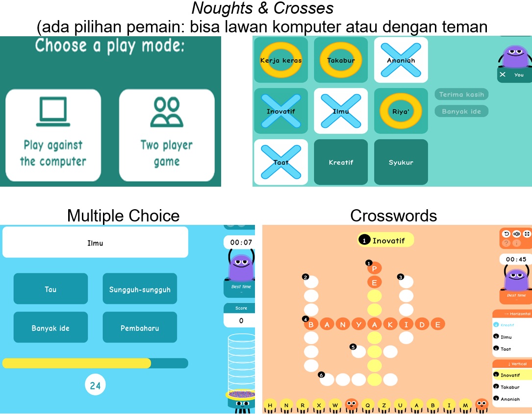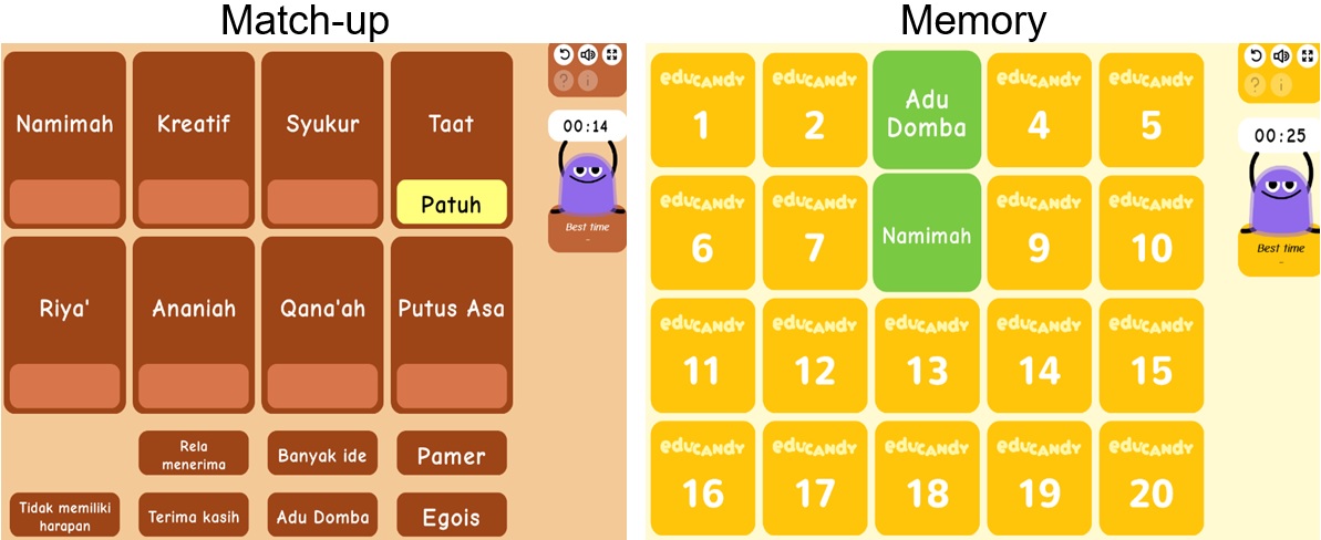 - Pada permainan words dan matching pairs, peserta didik diberi kebebasan memilih permainan sesuai keinginannya.